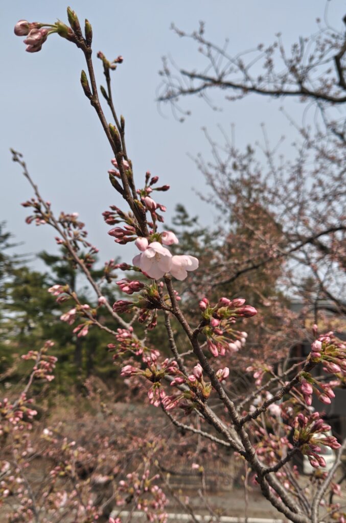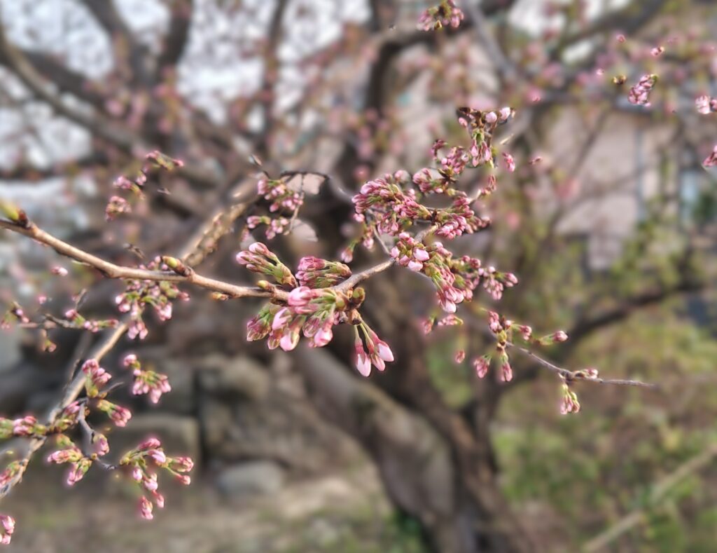 咲いているソメイヨシノの花は数えるほどでしたがつぼみは膨らみを増していました。