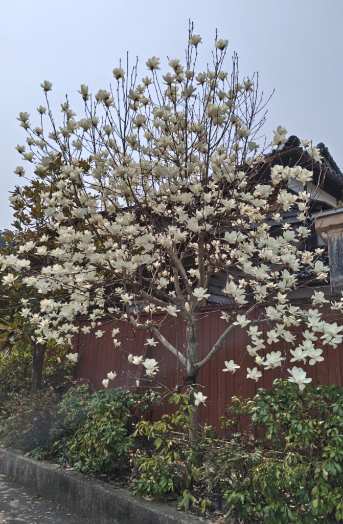 空に向かって真っ直ぐに咲くハクモクレン。