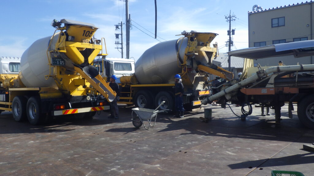 猛暑の続く中、気温が上がる前の朝方に打設をしました。