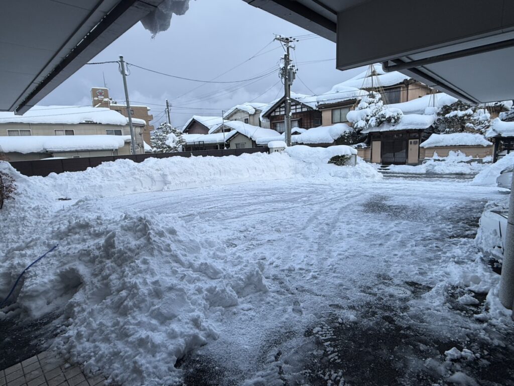そんな中、当社では社員が出勤する前に社長が除雪機を出動させて駐車場を整備してくださり、さらに会長ご夫婦も周辺道路の除雪を行ってくださっています。